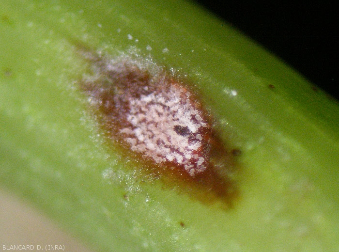 En la primavera, los estromas que se han vuelto portadores de esporas (presencia de acérvulos) después de los períodos húmedos están en el origen de los conidios, lo que garantiza las contaminaciones primarias en los tejidos jóvenes especialmente sensibles. En presencia de agua libre en la planta, las esporas germinan entre 2 y 32 ° C. Los filamentos formados penetran directamente en la cutícula. El micelio intercelular invade los tejidos y los desorganiza.
