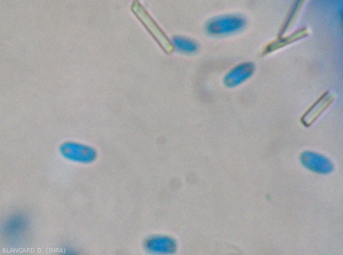 Una vez que los tejidos son invadidos, se forman conidios en el micelio subcuticular y posteriormente en mayores cantidades en los estromas formados (acérvulos) (Figuras 2 y 3). Estos conidios (figura 4) aseguran la dispersión de la enfermedad después de lluvias, salpicaduras, durante tormentas asociadas con granizo, pero también a través de insectos "vectores pasivos" no especificados.
