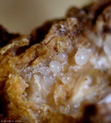 Une coupe transversale des galles permet de mettre en évidence les femelles matures (figure 6), confirmant ainsi le parasitisme de ces nématodes.