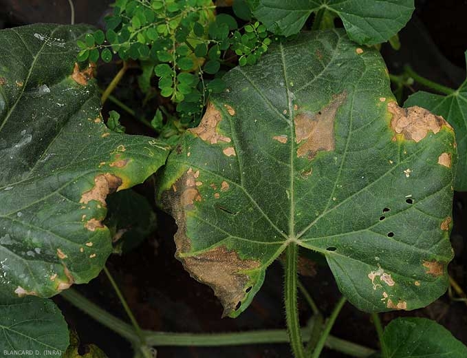 Ces altérations racinaires perturbent l'absorption de l'eau et des éléments minéraux, et donc le développement des plantes qui présentent une croissance plus ou moins réduite. Le feuillage peut être chlorotique, et des flétrissements (figures 7 et 8) surviennent parfois aux heures les plus chaudes de la journée.  Les feuilles basses des plantes très affectées révèlent une sénescence précoce.