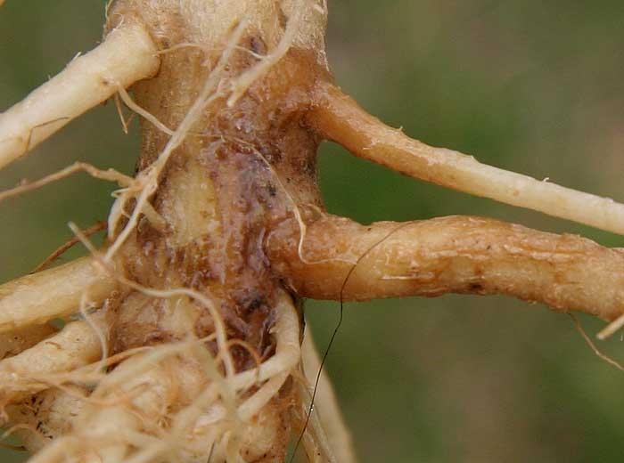 Las plantas afectadas a menudo están poco desarrolladas y son cloróticas. A veces se marchitan en los días calurosos
