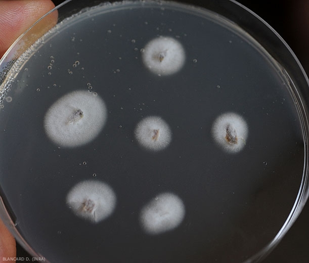 V. albo-atrum , a diferencia de V. dahliae , no produce microesclerocios sino un micelio inactivo , dividido y oscuro en los tallos y el medio de cultivo. Además, este Verticillium no parece poder crecer a 30 ° C.