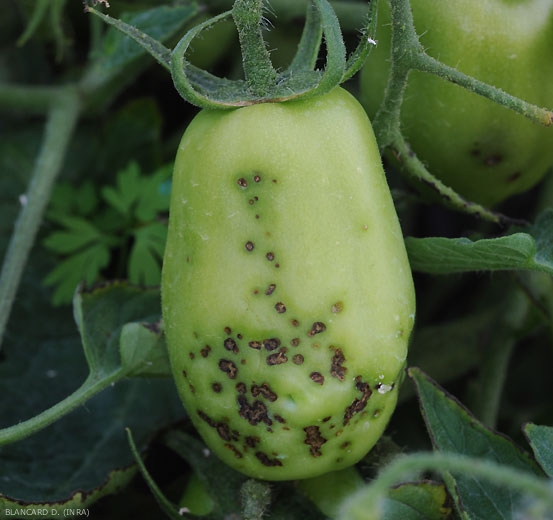 Estas lesiones en frutos pueden confundirse con los daños causados ​​por impactos de granizo. Agreguemos que no es infrecuente que esta bacteria y Pseudomonas syringae pv. el tomate se encuentra al mismo tiempo en los mismos cultivos en las regiones templadas.