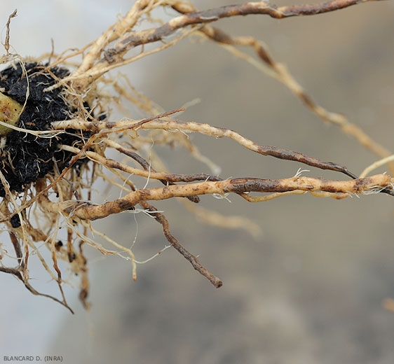 - Bioagresseurs parfois associés sur les racines : Colletotrichum coccodes, Rhizoctonia solani, Fusarium spp., Meloidogyne spp., etc.