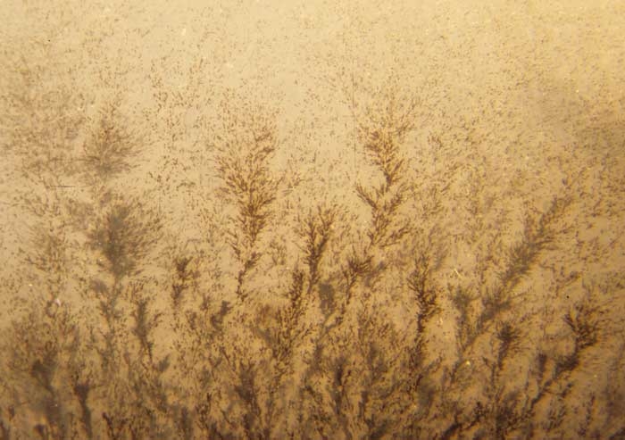 - Présence de microsclérotes bruns à noirs, à parois épaisses et de forme variable (mesurant de 15 à 100 µm) parfois visibles le long de quelques nervures.