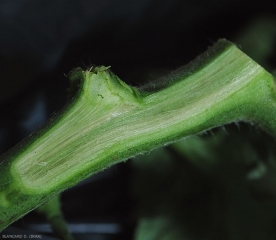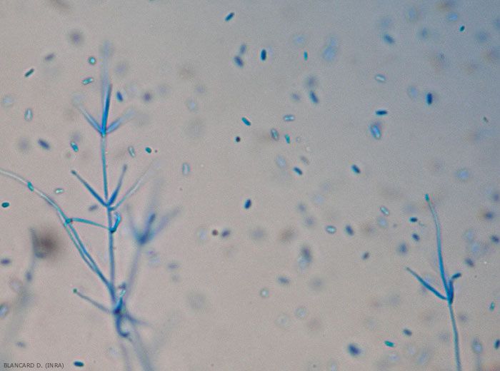 - Les fragiles conidiophores verticillés formant des conidies ovoïdes ne peuvent pas être observés directement sur les échantillons de plantes malades.