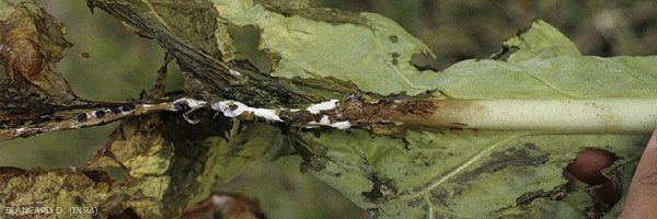 Sclerotinia sclerotiorum, assez polyphage, est largement réparti de par le monde. Il est capable d'infecter le tabac aussi bien en pépinière, qu'en plein champ. Il n'est pas considéré comme un agent pathogène grave pour le tabac, excepté dans quelques pays, comme le Brésil, où ses attaques en pépinière sont redoutables, et en Allemagne.
