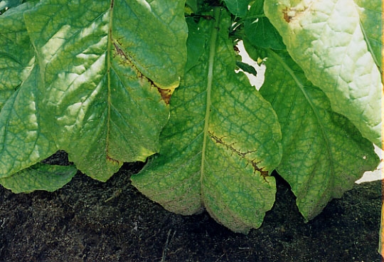 Le virus Y de la pomme de terre (Potato virus Y, PVY) est représenté dans la figure 1. La variabilité biologique et sérologique de ce virus a surtout été étudiée à partir de souches "pomme de terre". Sur tabac, deux types de souches sont classiquement signalées : des souches modérées produisant des symptômes de type mosaïque, des souches sévères induisant en plus des altérations nécrotiques. Ces souches nécrotiques sont généralement apparues dans de nombreux pays après les souches à mosaïque ; elles sont de loin les plus dommageables.