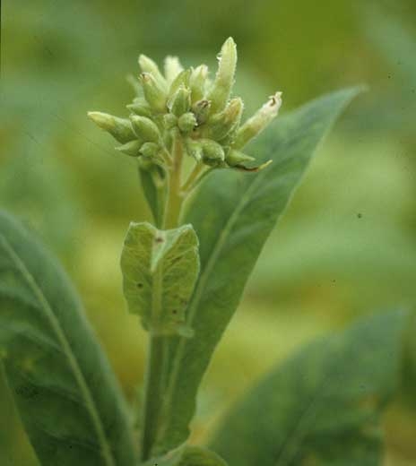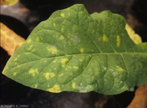Peronospora hyoscyami f.sp. tabacina se développe sur tabac tout au long de son cycle de culture .