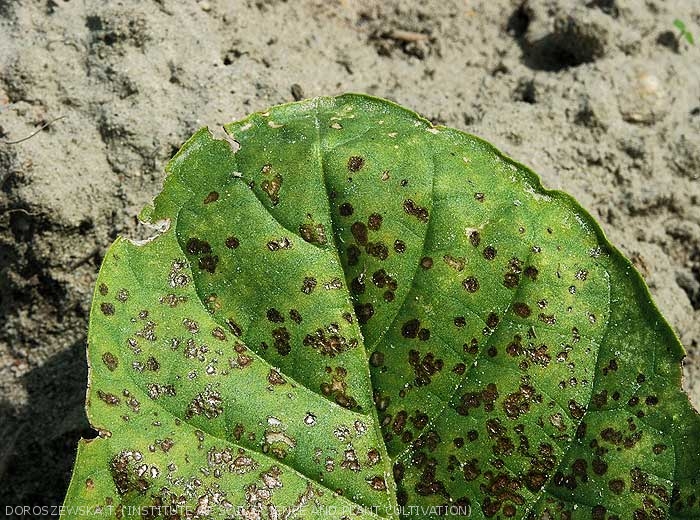 - carence en manganèse (Mn) : des jeunes feuilles chlorotiques parsemées de taches nécrotiques, des nervures restant vertes sont les symptômes les plus caractéristiques. Le manganèse est un activateur de certaines enzymes et est nécessaire à l'intégrité de la membrane des chloroplastes. Il intervient dans la libération de l'oxygène lors de la photosynthèse ;