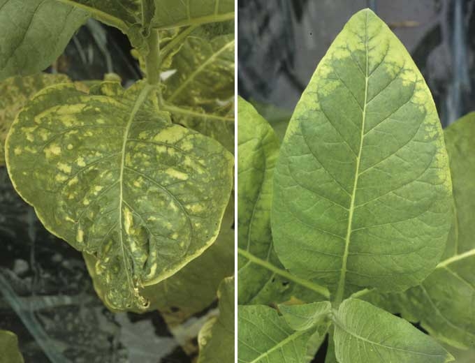 D'autres pesticides, par exemple des mélanges d'insecticides et de fongicides, des substances comme des engrais, peuvent aussi être à l'origine de phytotoxicités sur tabac. Ils provoquent aussi des jaunissements, mais également des déformations foliaires.