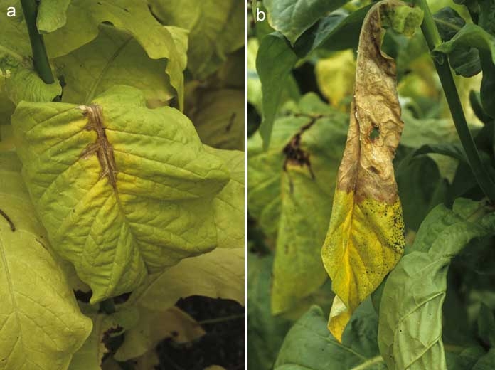 Ce champignon sévit aussi au cours du séchage des tabacs, tout particulièrement sur les tabacs bruns et de type Burley (figure 6).