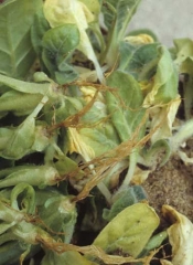 Olpidium brassicae, champignon parasite obligatoire aquatique, est associé à des brunissements racinaires généralisés sur plants de tabac (figures 1 et 2). Dans les semis flottants, on assiste à de véritables fontes racinaires affectant les portions trempant dans la solution nutritive.