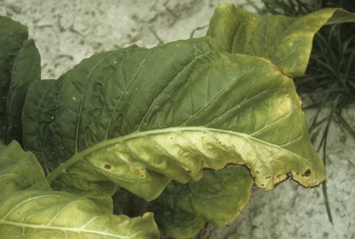 Comme de nombreuses affections vasculaires et comme son nom l'indique, cette maladie (causée par Ralstonia solanacearum) se traduit par l'apparition de flétrissements foliaires unilatéraux, parfois accompagnés de jaunissements (figure 1). Assez rapidement, les tissus affectés se nécrosent et se dessèchent (figure 2). Une coupe longitudinale de la tige permet de constater que les vaisseaux ont souvent pris une coloration brune et que l'altération a pu gagner la moelle et le cortex (figures 3 et 4).