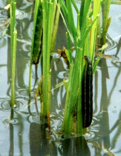 Les nématodes posent de sérieux problèmes, ainsi que le chlorops du blé et de l'orge, Chlorops pumilionis (Diptera, Chloropidae). Les larves de noctuelles comme Spodoptera frugiperda (légionnaire d'automne, Lepidoptera Noctuidae, figure), espèce tropicale polyphage, peut migrer vers les zones méditerranéennes et causer de grands ravages en rizière.