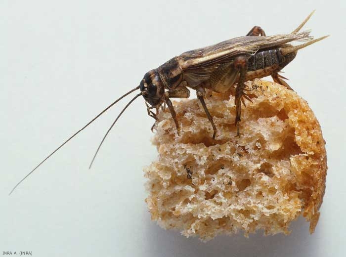 Le régime alimentaire de Acheta domesticus est omnivore et se compose principalement d'insectes morts ou vivants, de fruits, de feuilles, de graines, de déchets alimentaires, de miettes de pain (figure 2). Il peut même se nourrir de ses congénères en cas de conditions extrêmes de survie.