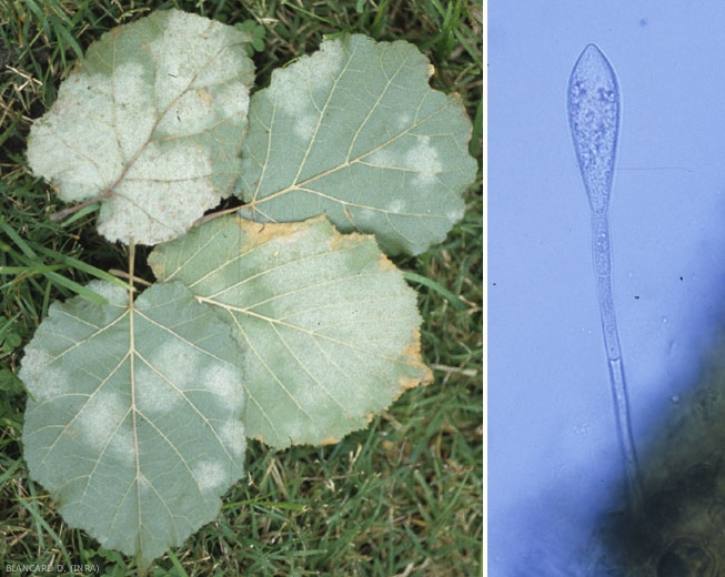 Parmi les champignons parasites du noisetier on peut citer Sphaceloma coryli (Ascomycota Dothideomycetes), responsable de l'anthracnose qui peut provoquer des nécroses importantes sur involucres et fruits ce qui interdit leur vente. Monostichella coryli (anc. Gloeosporium coryli) serait plus un champignon opportuniste et s'attaque surtout aux inflorescences et bourgeons. La brûlure orientale (maladie non présente en Europe) est causée par le champignon Anisogramma anomala (Ascomycota Sordariomycetes) considéré comme parasite de quarantaine car il détruit l'arbre. L'oïdium provoqué par Phyllactinia guttata (figure 1) a peu d'importance économique car cette maladie apparaît plutôt en fin de saison. Monilinia fructigena et Botrytis cinerea peuvent s'attaquer aux noisettes en juin-juillet. Le chancre à Cytospora corylicola (Ascomycota Sordariomycetes) est une maladie qui peut-être observée dans les vieux vergers du Sud de l'Europe. Le noisetier est aussi sensible aux pourridiés (voir la fiche sur Rosellinia necatrix).