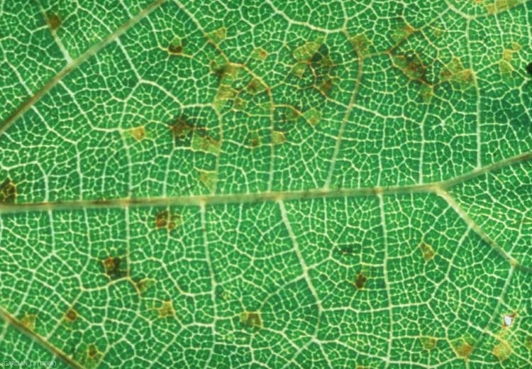 Chez les bactéries, c'est Xanthomonas arboricola pv. corylina (figure 4) qui provoque la nécrose bactérienne responsable de dégâts non négligeables. Cette maladie est favorisée par les gelées du printemps. Le dépérissement bactérien du noisetier (Pseudomonas avellanae) est très grave puisqu'il entraîne la mort de l'arbre. Un virus responsable de la mosaïque du feuillage (Apple mosaic virus) peut entraîner 10 à 20% de pertes de la récolte.
