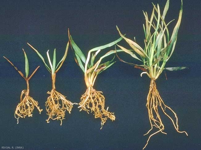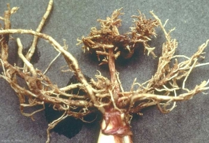 La présence de ce nématode se traduit dans la culture, au printemps, par des zones de végétation réduite et une chlorose foliaire. Les plantes attaquées présentent, en juin, des racines très courtes et buissonnantes. L'infection par de nombreux nématodes sur une même partie de racine induit la formation d'un chignon.