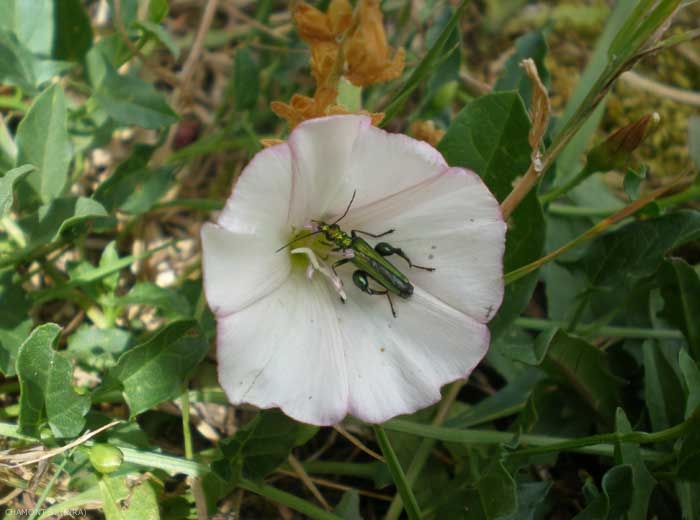 Cette espèce nourrit les chenilles de quelques lépidoptères comme le ptérophore blanc (Pterophorus pentadactylus, Pterophoridae, figure) ou le sphynx du liseron (Agrius convolvuli, Sphingidae). La fleur odorante attire les insectes auxiliaires dont les imagos utilisent le nectar (figure). Cette plante est aussi un hôte sauvage de la cicadelle vectrice du bois noir de la vigne, Hyalesthes obsoletus.