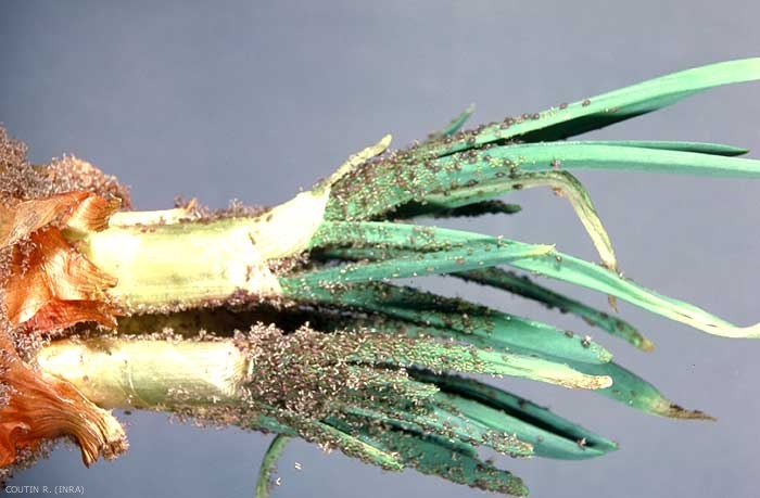 Les colonies  de pucerons se rencontrent sur les échalotes et divers bulbes en fin de période de conservation ce qui entraîne des malformations de croissance des nouveaux plants (figure 2).
