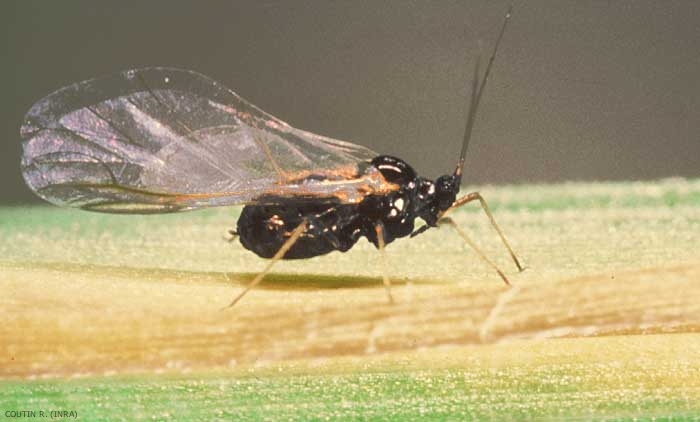 Présent dès le mois de juin sur les graminées et notamment sur le maïs, R. padi pullule surtout à l'automne, de septembre à novembre (figure 1), lorsque les conditions climatiques deviennent défavorables au développement des mycoses et des insectes aphidiphages. En fin de cycle végétatif du maïs, R. padi retourne sur les semis de céréales d'hiver. La rareté de l'hôte primaire, dans les régions à céréaliculture intensive, entraîne le plus souvent l'anholocyclie.