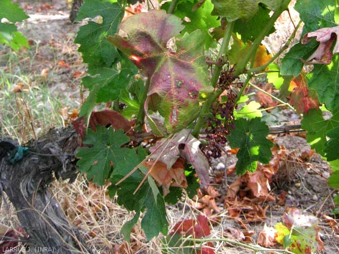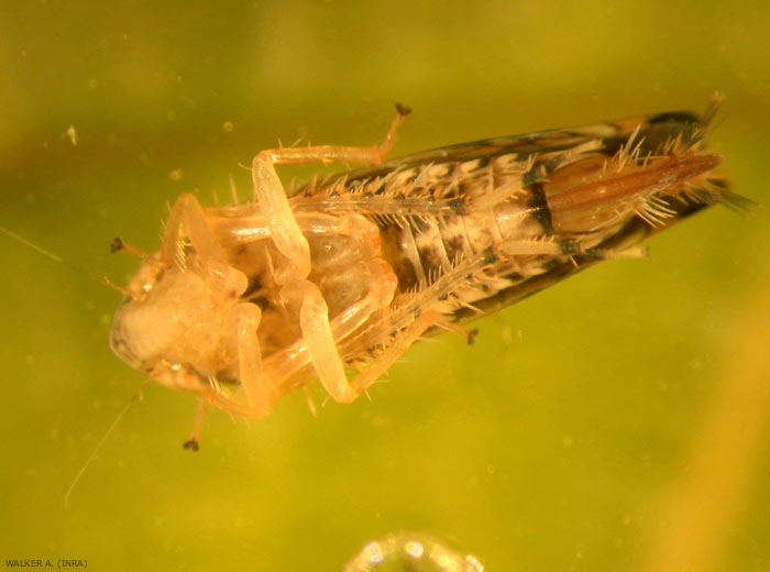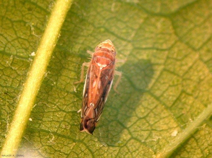 Cette cicadelle n'occasionne pas de dégâts directs à la vigne mais elle est l'agent propagateur du phytoplasme responsable de la flavescence dorée (figures 4 et 5) et pour cette raison la lutte contre ce ravageur est obligatoire.