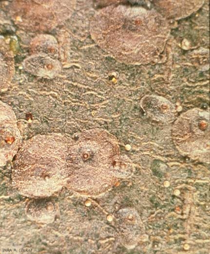 La croissance des cellules végétales de l'hôte est perturbée sous l'effet des piqûres d'alimentation et de l'injection d'une salive plus ou moins toxique ; les rameaux se déforment. Les organes végétatifs atteints (rameaux, branches), se dessèchent et les arbres infestés peuvent mourir. Les fruits infestés sont dépréciés (figure 3).