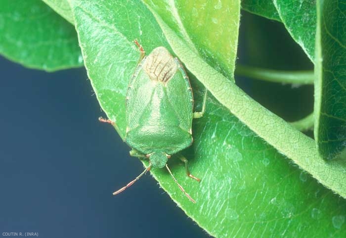 Très commune et surtout polyphage, on trouve la punaise verte des bois en particulier sur pommier et poirier, lorsque les vergers sont situés à proximité de zones boisées, ainsi que sur des plantes herbacées sauvages et cultivées.