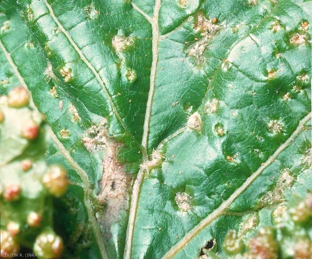 On observe aussi, de plus en plus fréquemment en France, les galles en forme de petit pois sur le feuillage (figures 4 à 6) provoquées par les piqures de fondatrices.