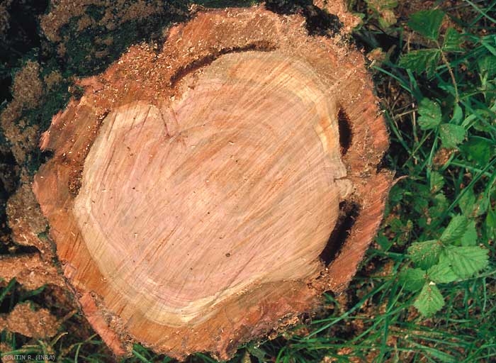 La chenille se développe dans les troncs de nombreux arbres fruitiers : le pommier (Malus pumila), le cerisier (figure 1), le prunier (Prunus spp.), le poirier (Pyrus communis), l'olivier (Olea europea) et d'autres arbres feuillus tels que le châtaignier (Castanea sativa), l'orme (Ulmus sp.), les chênes (Quercus sp.), les peupliers (Populus sp., plus d'infos), le marronnier (Aesculus sp.), le tilleul (Tilia sp.), l'érable (Acer sp.).