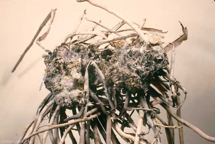 La larve s'attaque au système racinaire, dévore les bourgeons et évide les racines (figure 4). Elle provoque la disparition des plantes qui se dessèchent dans le courant de l'été ; les jeunes plantations sont particulièrement vulnérables.