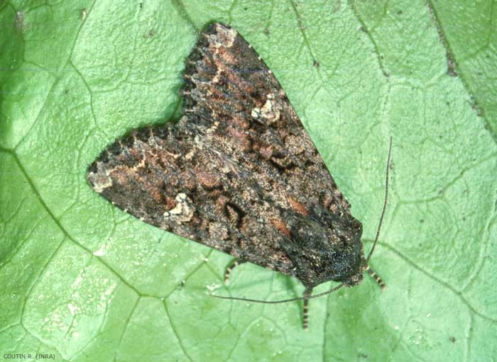 Mamestra brassicae est une noctuelle défoliatrice. Les dégâts se produisent surtout en juin, puis en septembre. Les chenilles détruisent une quantité importante de feuilles et leurs excréments s'accumulent dans la partie centrale du chou ou de la plante sur laquelle elles se développent (figure 4).