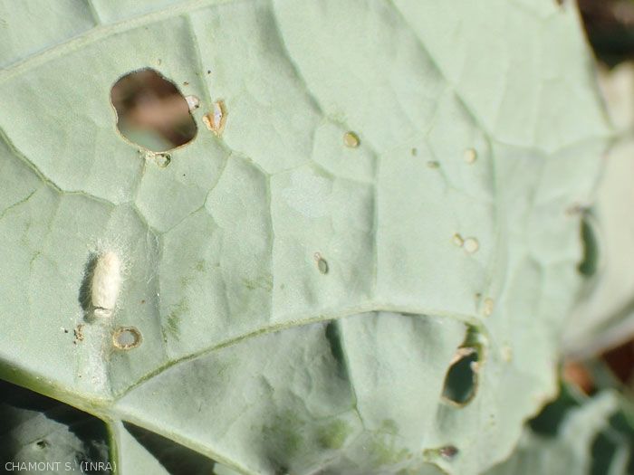 Plutella xylostella est parasitée au stade larvaire par un microhyménoptère, Cotesia plutellae (Kurdjumov, 1912) (anc. C. vestalis) (Braconidae, figure 3). Cette guêpe parasitoïde est attirée par les composés volatiles émis par les tissus lésés de la plante hôte lors d'une invasion massive de P. xylostella.