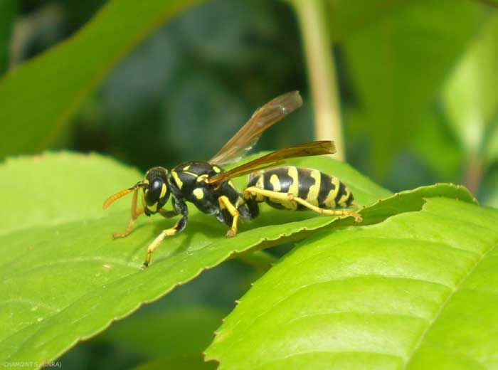 Cette guêpe ne doit pas être confondue avec Polistes spp., la guêpe des jardins (figure 2) qui n'est pas dangereuse pour l'homme, et qui est très commune dans le sud de la France.