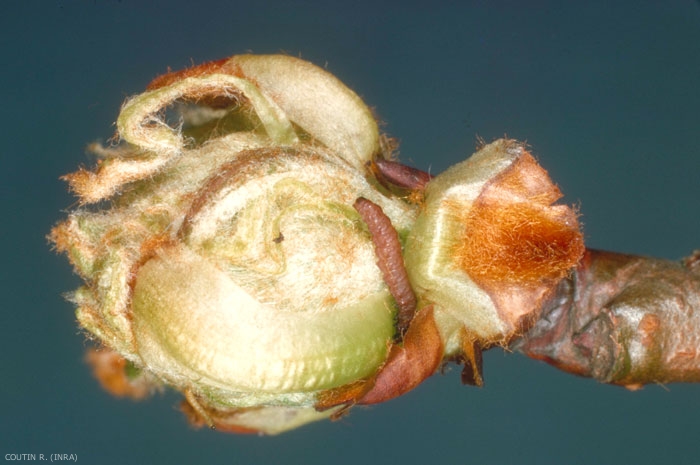 Les papillons apparaissent de la mi-juin à la mi-juillet. L'évolution embryonnaire dure 7 à 11 jours. Les chenilles rongent les bourgeons (figure 1) puis le parenchyme foliaire, principalement sa face inférieure.