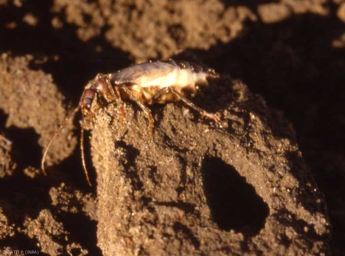 L'éclosion des oeufs s'échelonne de mars à mai et les larves pénètrent aussitôt dans le sol où elle ronge les racines et le collet. Elle s'enfonce profondément dans le sol en été et en hiver et remonte dans les couches superficielles au printemps et à l'automne. Elle se nymphose dans le sol à la fin de l'hiver (figure 1).