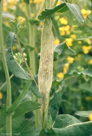 Ce charançon est très nuisible sur colza. Les dégâts sont essentiellement dus à la ponte. La présence de l'oeuf dans la tige provoque une nécrose des tissus en cours de croissance, ce qui entraînera des déformations caractéristiques : nanisme, torsion, éclatement (figure 2), ainsi qu'un dessèchement prématuré dû souvent à l'installation d'un parasite secondaire tel que le phoma (Leptosphaeria maculans).