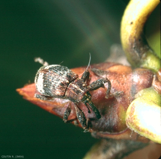 En automne, les piqûres nutriciales de l'adulte à la base des bourgeons foliaires peuvent atteindre les faisceaux libéro-ligneux et provoquer le dessèchement partiel ou global du bourgeon. Les bourgeons floraux attaqués par les larves ne s'ouvrent pas du tout ou parfois se dégagent irrégulièrement et se dessèchent avant, ou au moment de la pleine floraison (figure 2).