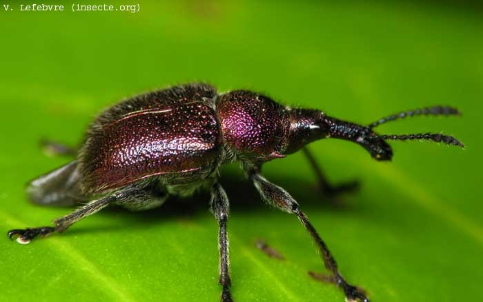 L'adulte présente une allure de charançon, velu, de 7 à 9 mm de longueur, marron doré et rougeâtre brillant. Les pattes et le rostre sont marron. Le rostre possède une carène basale.