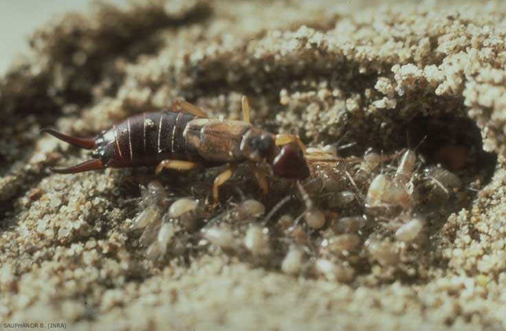 La forficule est polyphage, consommant des végétaux supérieurs, des lichens, des champignons, ainsi que des proies animales comme les pucerons et à ce titre doit être considéré comme un auxiliaire.