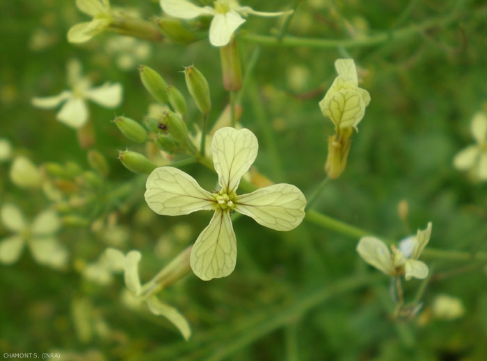 Fruits : siliques à articles, plus longs à la maturité que les pédoncules et se divisant en fragments.