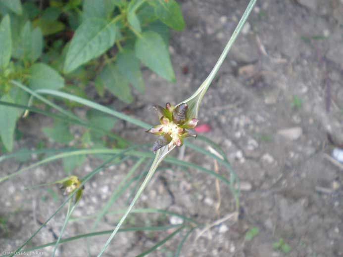 Feuilles semi-cylindriques, jusqu'à 5 mm de largeur, creuses, présentes sur la moitié inférieure de la tige face supérieure plane, nettement canaliculée
