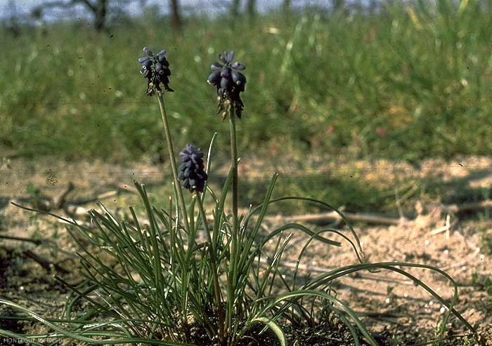 Fleurs d'un bleu foncé à dents plus claires ou blanchâtres à odeur de prune. Fleurs relativement grandes, disposées en grappe ovale-oblongue et très compacte. Pédoncules floraux plus courts que les fleurs ;