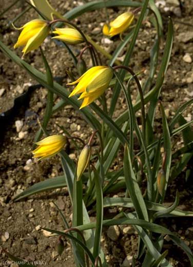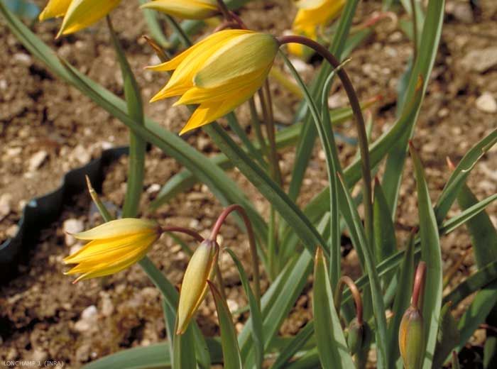 Feuilles glauques, étroites, très allongées, pliées en gouttière. Ordinairement 3 feuilles par plante ;