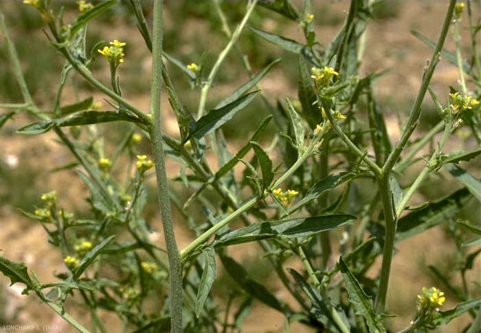 Feuilles pétiolées, lyrées-pennatipartites, les caulinaires à 1-3 lobes latéraux, oblongs et courts, le terminal très grand, hasté ; lobes latéraux plus au moins perpendiculaires à la nervure principale de la feuille ;