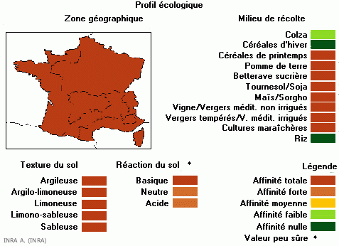 Cette adventice est présente dans les cultures de plusieurs pays du Sud et du Nord de l'Europe, elle est plus rare en Angleterre. En France on la trouve sur tout le territoire, sur tous les types de sols.