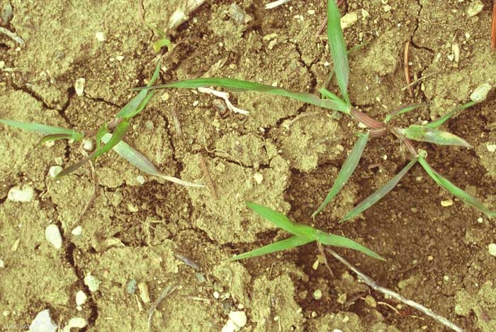 Ligule membraneuse dentée, limbe non auriculé à la base.