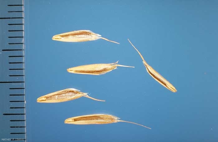 Semence généralement dispersée avec 1 fleur entourée des glumelles. Présence d'une baguette à la base de la glumelle inférieure (lemme)