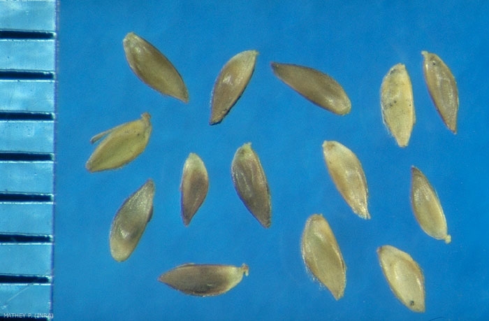 Fruits : caryopses glabres, oblongs, comprimés par le côté.
